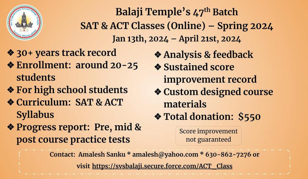 ACT / SAT CLASS โ SVS BALAJI TEMPLE